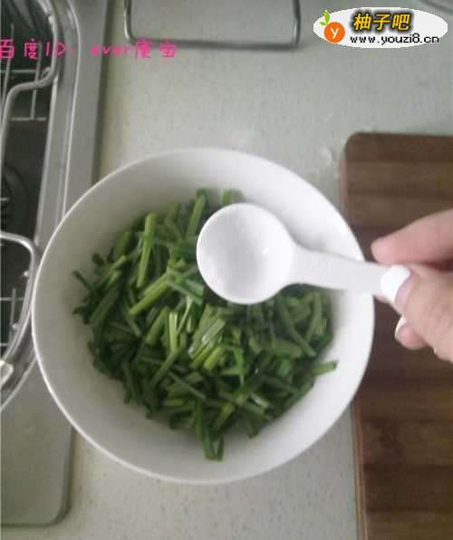 3可先放些许食盐和韭菜花一起抓一下,这样较为入味,将肉洗净切片;