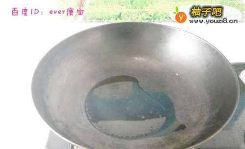 4在锅内倒入适量的食用油(若炒五花肉可少放食用油,因为肥肉能炼出油),待油温升高慢慢有烟起来时,将火关小,放入小勺的郫县豆瓣酱快速翻炒;