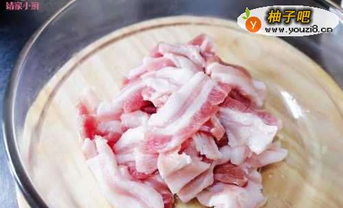 2五花肉洗净,切薄片,如果买的是带皮五花肉,记得一定要去皮再切薄片。