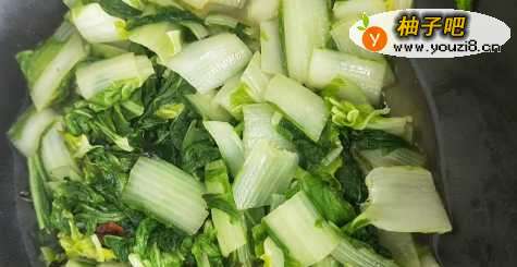 3这时候,我们再加入刚才切好的杭白菜;