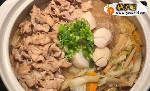 7最后加入冬粉焖煮2分钟,再铺上炒过的肉片和干贝盖上锅盖煮1分钟,最后撒上葱花就完成
