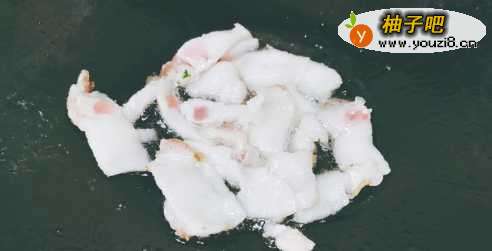 4起锅热油,只需要放少少花生油,再把五花肉放入锅,中火煎至焦黄。