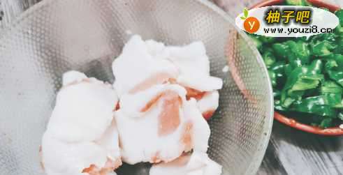 3五花肉切成片,青辣椒切小段。油下锅,先下猪肉中火煎至焦黄,煎出油来炒棉豆
