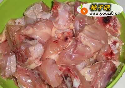 首先把鸡肉切成小块,洗干净,把水控干,然后放入盐、料酒、生抽、白糖、淀粉少许,姜腌制20分钟。