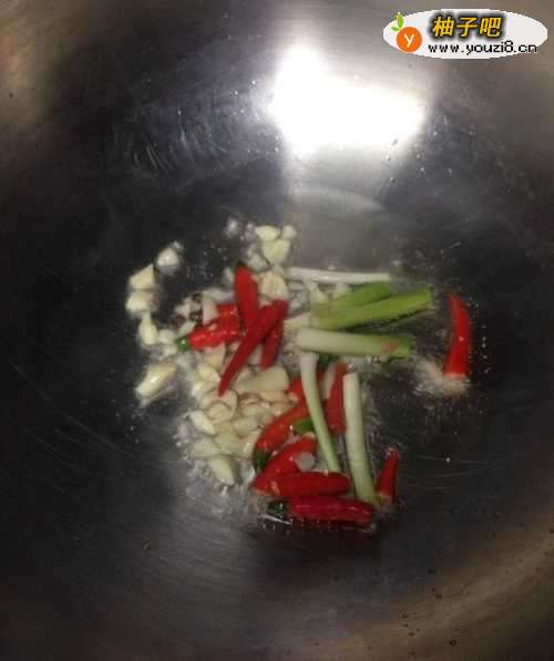 3锅里加入适量油,大火烧开油,转入小火,放入备好的葱姜蒜,花椒红辣椒爆香出味。