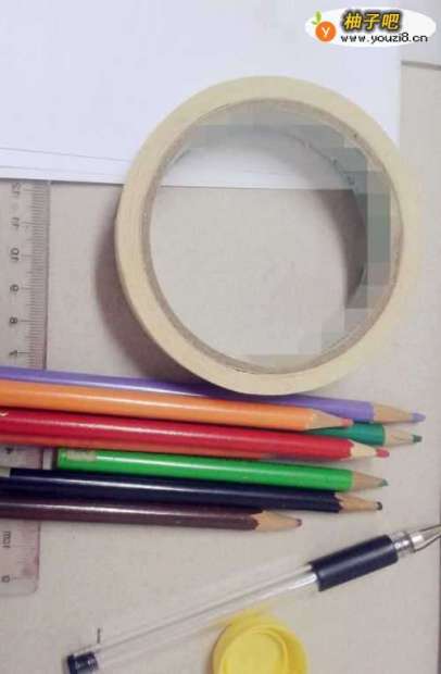 2因为没带圆规,所以要用大胶带圈画一个大圆。按住胶带圈,用笔画出一个圆。