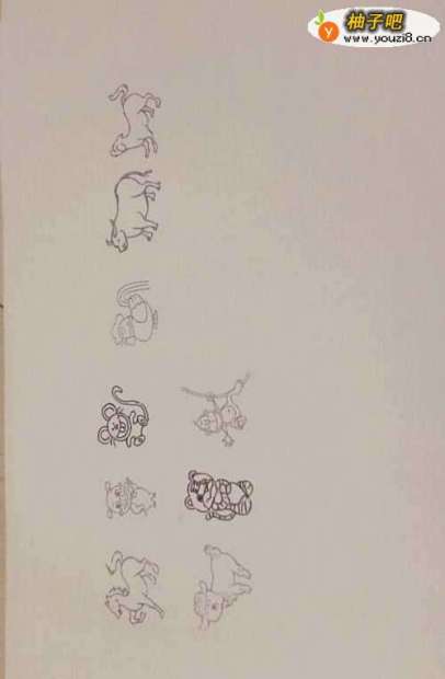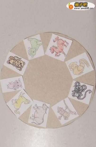 7在白纸上画一些旋转时需要选择的物品。(这里假设是给小朋友们选动物玩具,就画了许多小动物)