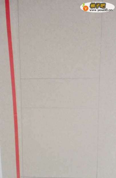 4在硬纸板上,用直尺和笔,画出一个大的长方形,长方形中再画两个正方形和一个小长方形,两个正方形一样大。