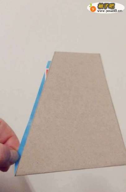 10把那两个梯形和小长方形的硬纸板,按照长方形两个边的线,折一下,立起来,这就是转盘的底托。