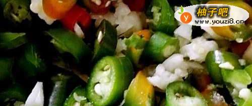 2接下来,把辣椒洗干净,切成小块的,如下图所示,切成这个样子容易是辣椒的香味进入西红柿里。