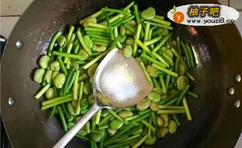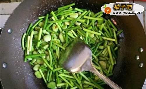 8一盘清炒的蒜苔蚕豆就做好了,对于喜欢吃素的朋友们一定是很好的福利呢。