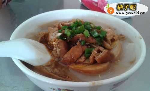 起点站·开胃--广场潮州粿汁:粿汁中的是之截排粿角(粿片),由米浆制成。一碗热腾腾的粿片,淋上浅棕色的卤汁,再加上卤猪肠、卤肉、卤蛋、豆干或菜尾等,这就是粿汁了,非常爽口美味。一碗基本是十元。还可以另外加其他的菜料~