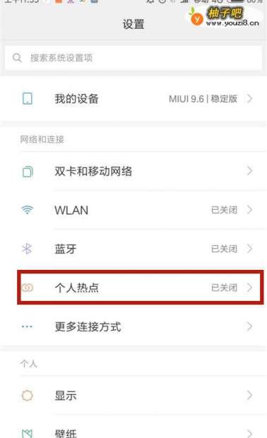2点击【个人热点】。