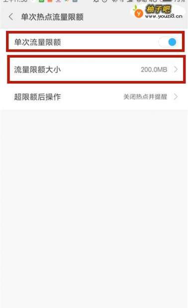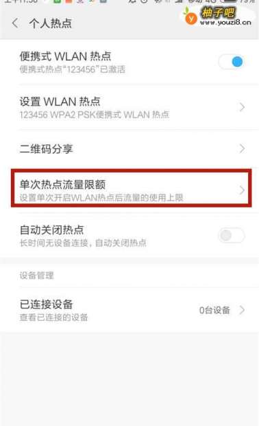 6如果怕流量超标,则打开【单次热点流量限额】。