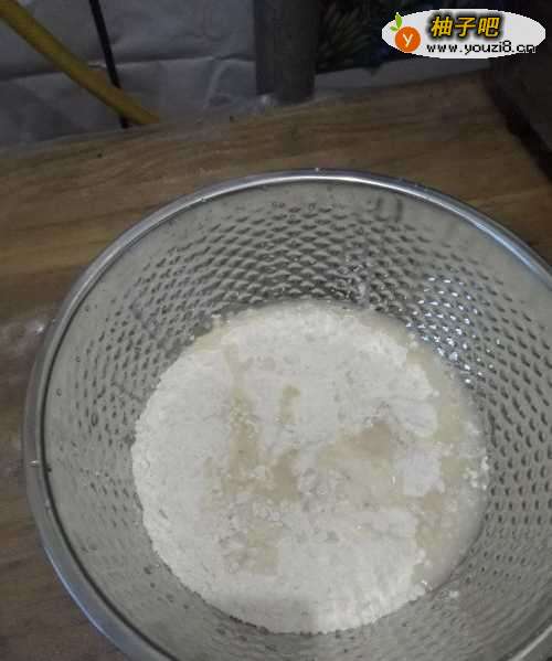 2面粉里加一点盐,然后酵母粉加一点温水化开倒入面粉,搅拌均匀。加盐可以让面团更劲道。
