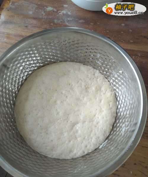 5揉好之后,盖上保鲜膜,面团的表面不会干,而且有保温作用,让面团发开的更快。
