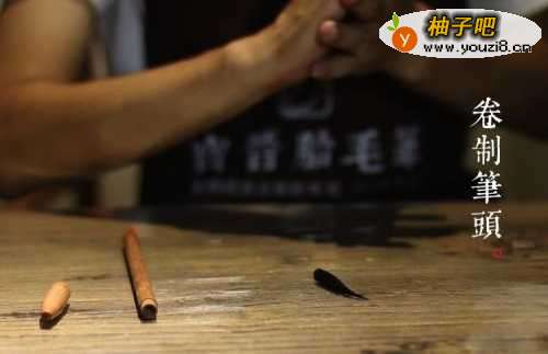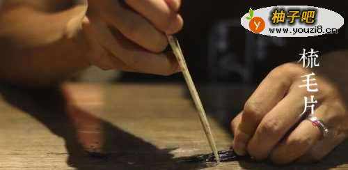 3梳毛:将齐好的胎毛,用梳子剔除中间杂乱的短毛,此过程可重复三到四遍。(胎毛笔制作难点二,需要一些技巧)如图