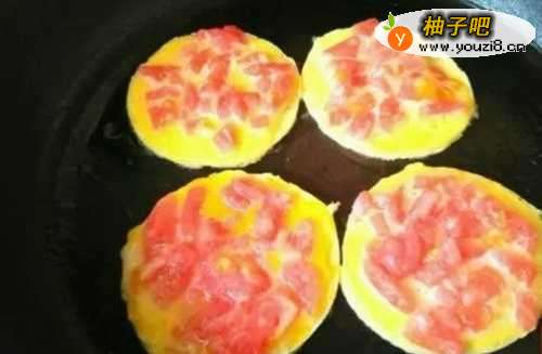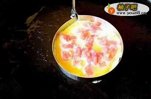 4蛋液没有凝固之前,放入图1的西红柿碎。