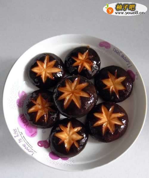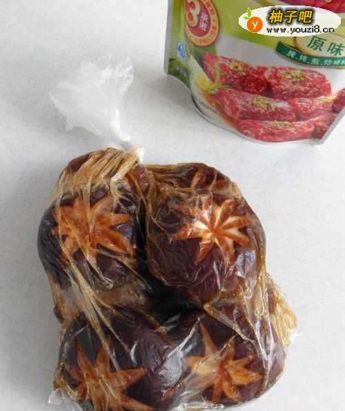 2取一个食品保鲜袋,将打好花刀的香菇装入袋中,再往袋中倒适量的烤肉酱,然后挤净袋子里的空气,系紧袋口,用手揉捏袋子中的香菇,这样能使烤肉酱与香菇更好的拌匀,然后放冰箱冷藏1-2个小时。