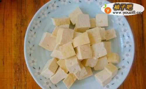 1:豆腐切成小块。