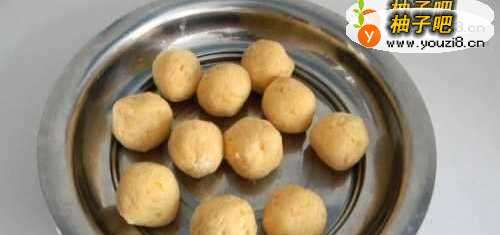 7分成50g一个小球,团圆。