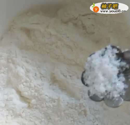 准备两碗面粉,一碗用红糖水和面。一碗用牛奶和白糖来和面。