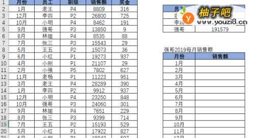 2例如:当你拿到公司300号人2019年每月销售额的表格时,如何快速查找出强哥、老王、小李的2019年总销售额呢?