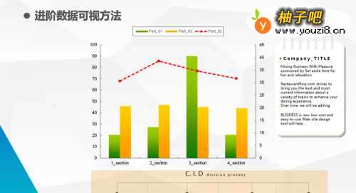 根据现有PPT中的数据模板,基本有以下14种,其中需要设计趋势图,只用单一图表展示的话,可以采用折线图的方式。