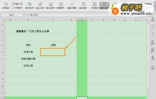 2选择单元格【C6】,输入离职当月的实际【出勤天数】。