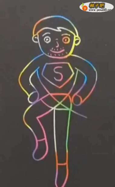 6最后画出超人披风。帅气的超人爸爸就画好了。见下图