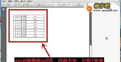 4发布成功,打开PDF文件,我们发现内容不全,少了1张右表。