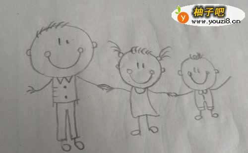 2我们先画出一个爸爸和一个女儿手牵着手,开心的在一起。