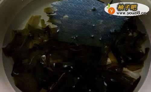2锅中倒入水,放入泡开的海带芽后,盖上锅盖煮至水滚。