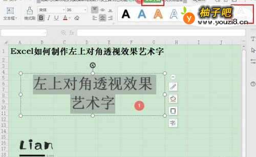 Excel如何制作左上对角透视效果艺术字