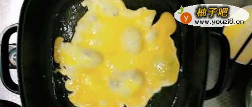 4待油温烧热后,倒入鸡蛋后,适当翻炒,成型后盛出备用。