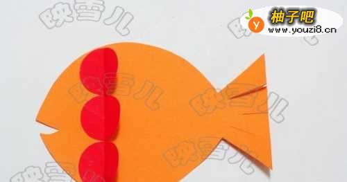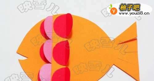 7同样方法贴完鱼身。再给鱼贴上眼睛。