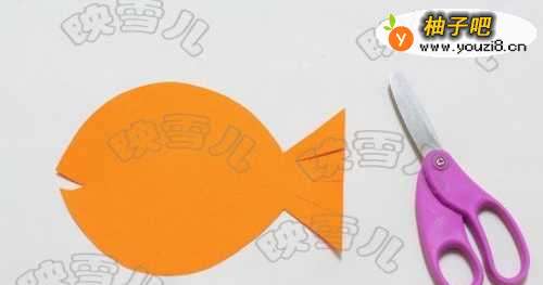 2用剪刀剪出小鱼,记得要在尾巴上剪三刀。