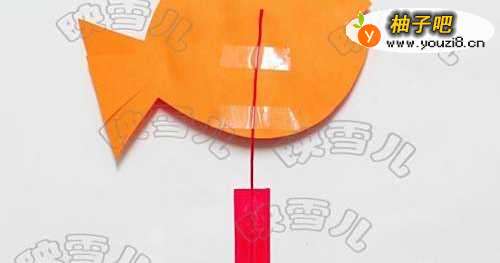 10将年年有余的小春联用透明胶贴到鱼身上。