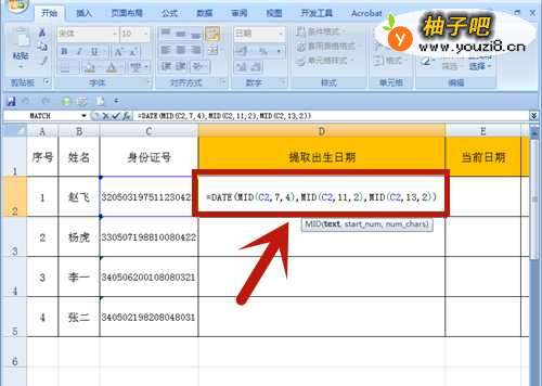 2、MID函数的功能:提取字符串,从指定位置开始,提取特定数量的字符。