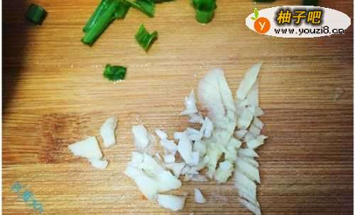 4在烧开水期间,准备酱料,生姜、蒜头、小葱,生姜去皮洗净切丝,蒜头拍碎去皮切末,小葱洗净切小段。取一小碗,加入少许酱油、盐巴、料酒、醋、香油、姜丝、蒜末,用筷子搅拌均匀。