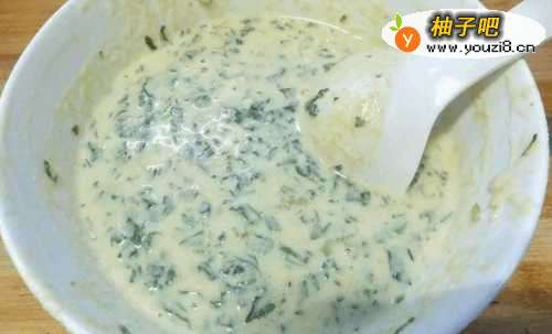 5蛋液加玉米面和面粉混合均匀成糊状。