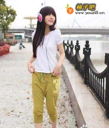 4休闲范儿的连帽套装,上身连帽款式,有抽绳的设计,细节感很强。下身短裤简约款式,露出美腿,整体的视觉效果很好,非常显气质。