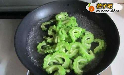 2将苦瓜放入沸水中焯一下,然后捞出来放入凉水中拔凉。
