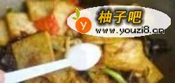 88.加入煎好的豆腐翻炒,加一勺十三香。