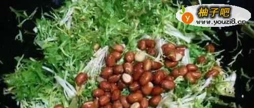 4将汁倒入苦菊中拌匀,再放入花生豆拌匀。