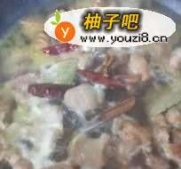 加入干辣椒,香叶,八角,桂皮,小火慢炖40分钟。