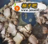 起锅烧油,炒糖色至枣红色。