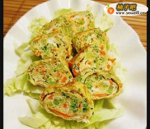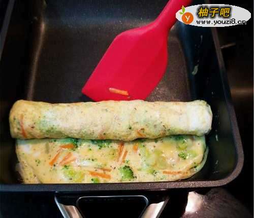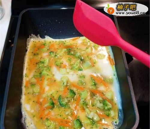 玉子烧加入西兰花和甘笋丝,不但口感丰富,颜色悦目,入口松软,大人小孩都爱吃。