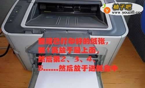 6整理已打印好的纸张,第1页放于最上面,然后第2、3、4、5......依次排列,然后空白一面向上,放于进纸盒内,空白面向上。