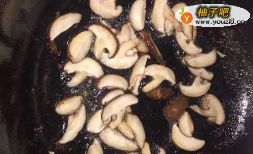 4另起油锅,将香菇下入锅里,炒香;